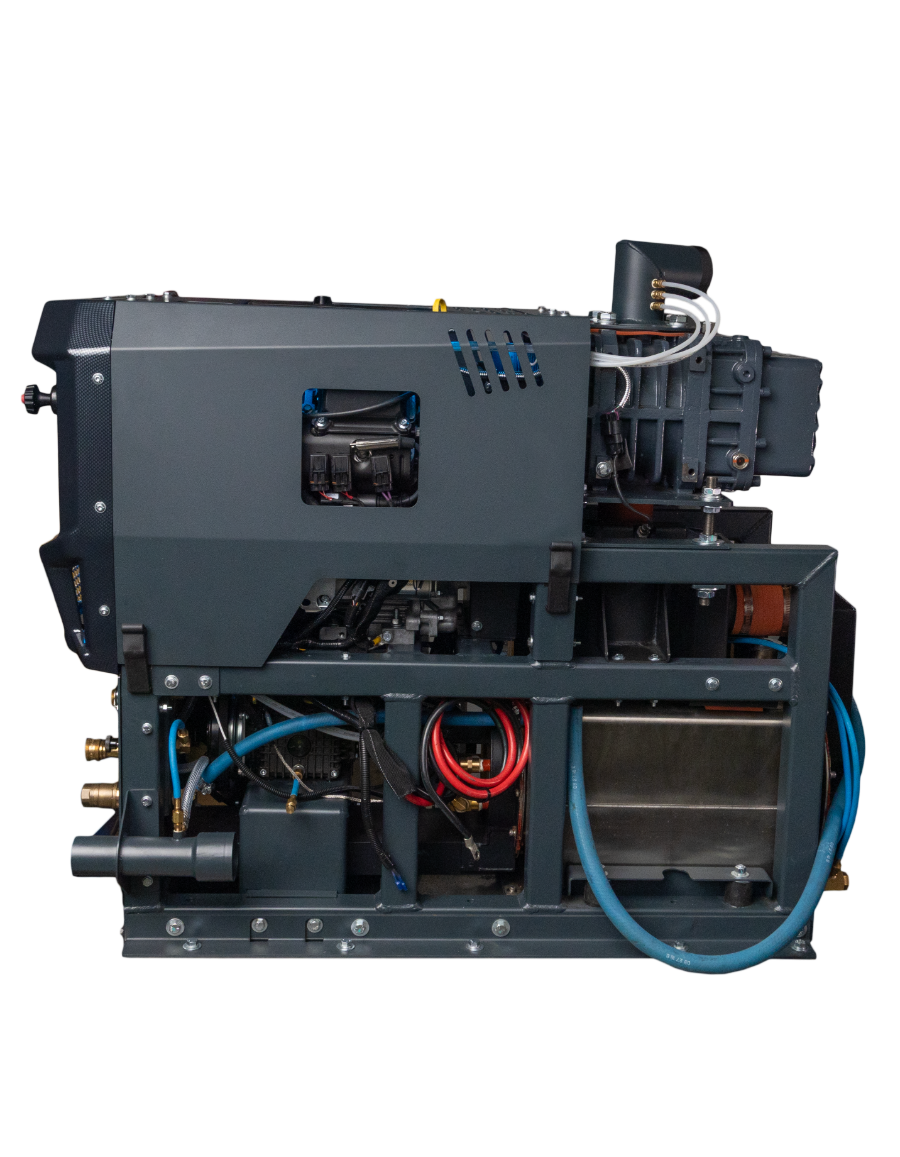 This CARB Compliant 370 EFI truckmount uses the same Kohler EFI engine, with a mechanical governor and traditional throttle cable to control engine speed.